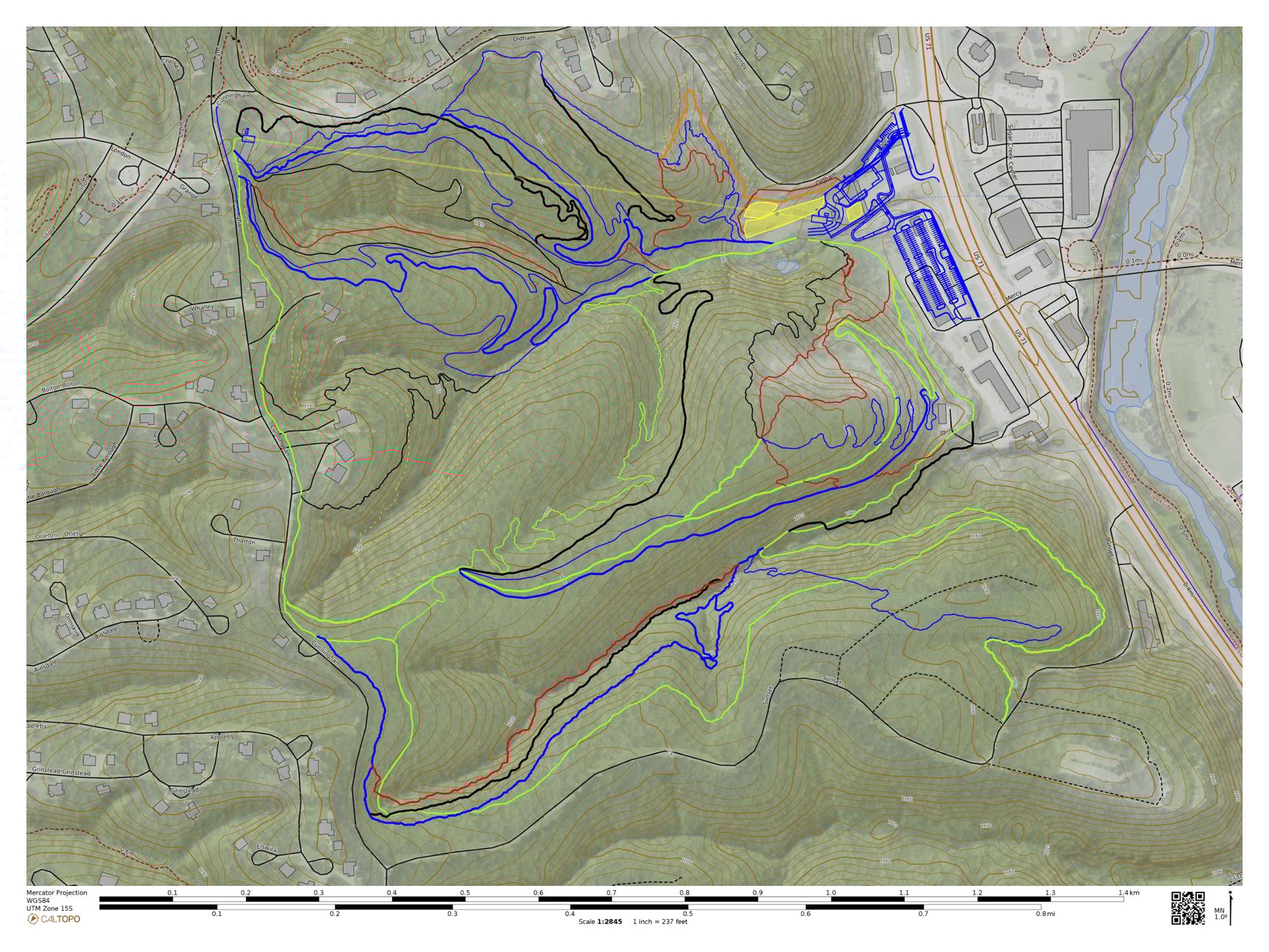 The lift + terrain: The hillside contains about 300 feet of vertical with a ~2,500-foot-long lift. Trails will be progression-based and signed like ski runs (green/blue/black/double black) with a ‘downhill’ focus.